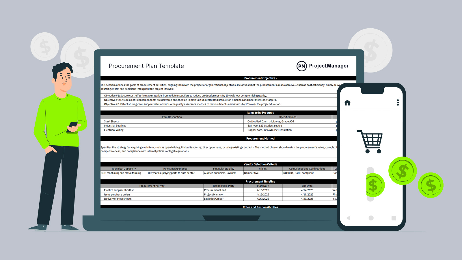 A procurement plan is an essential part of project planning that outlines what goods or services need to be acquired, how they will be procured and which vendors are best suited for the job. It ensures that procurement efforts align with an organization’s strategic goals and project timelines while complying with internal policies and legal obligations.