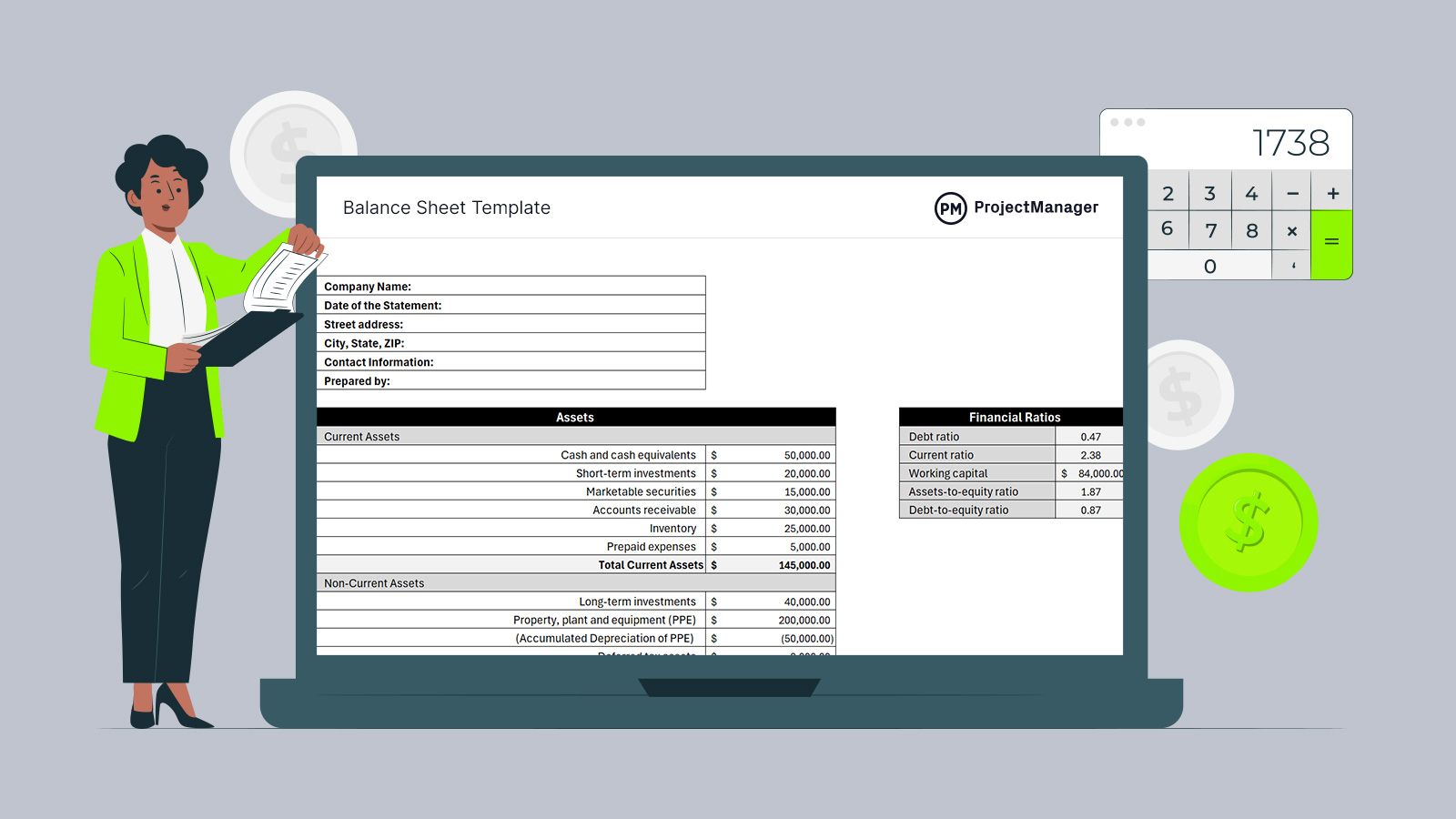 ProjectManager’s free balance sheet template for Excel