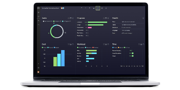 Get a high-level view of your project execution phase with real-time dashboards. There’s no setup required as with other lightweight software. Our project management software automatically collects and calculates live data and displays it in colorful graphs. See six project execution metrics that monitor progress and performance, from time and cost to workload and health.